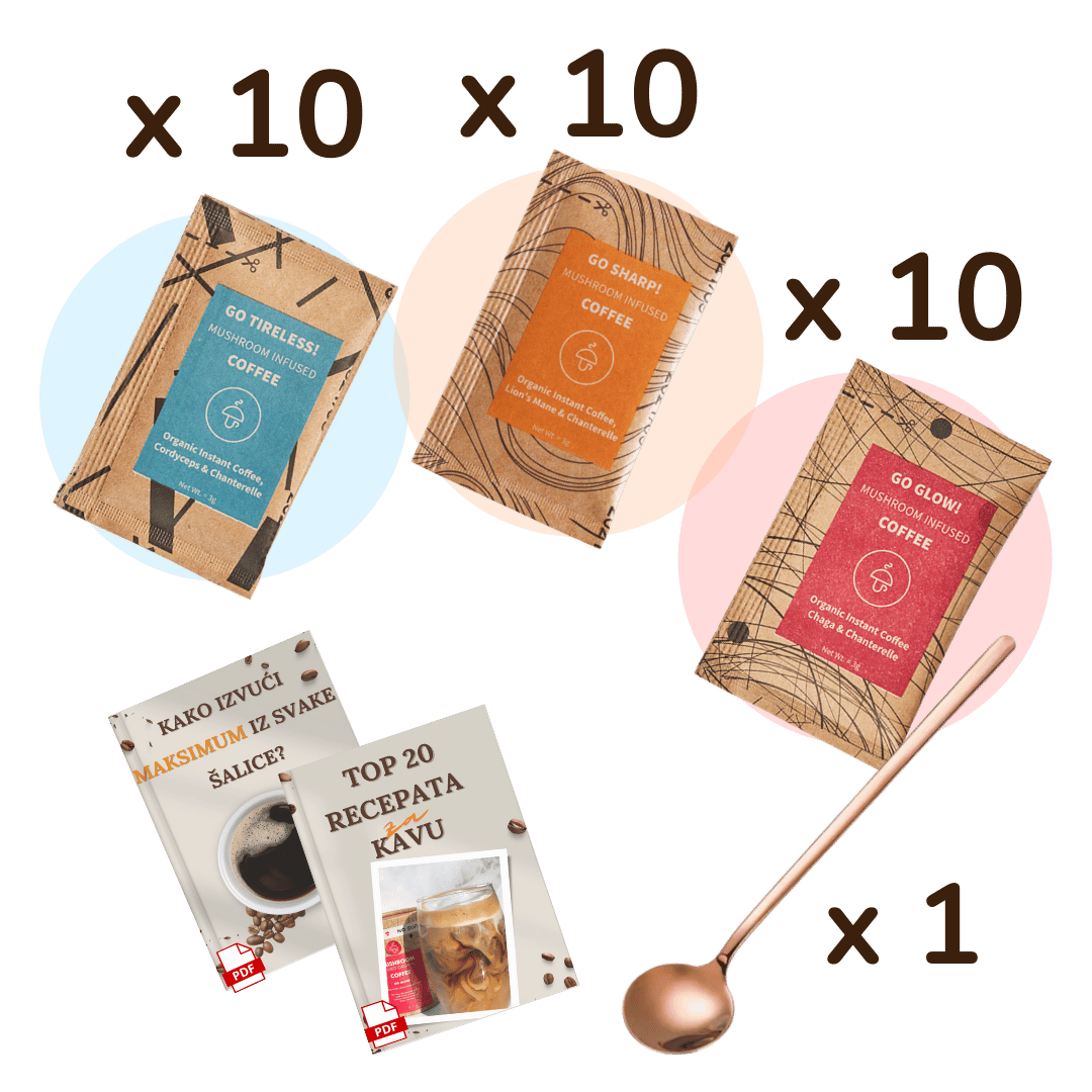 Kava sa gljivama ti osim fine organske kave donosi i visoku dozu adaptogena (gljive).