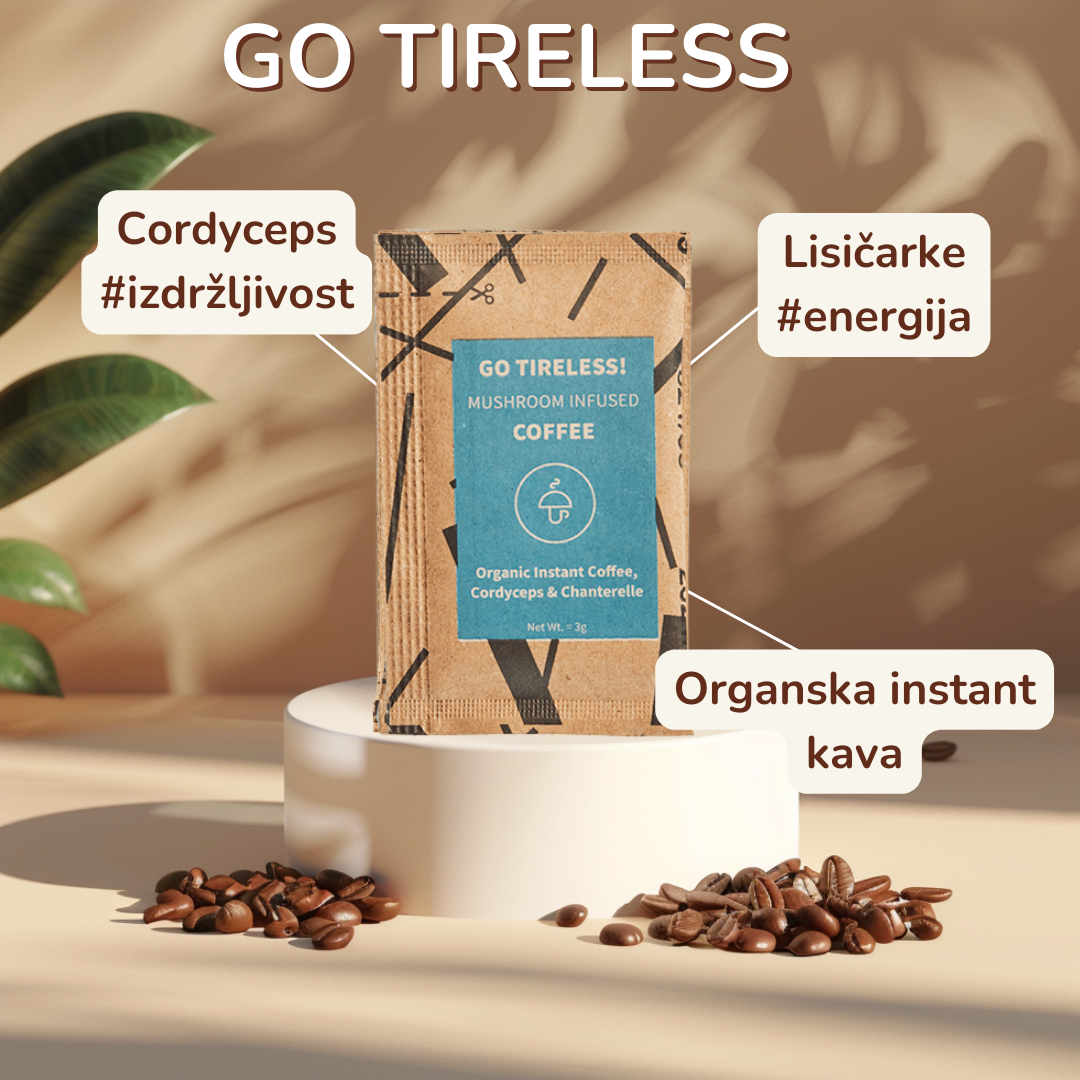 Go Tireless 30 serviranja - Organska kava s Cordycepsom i Lisičarkama